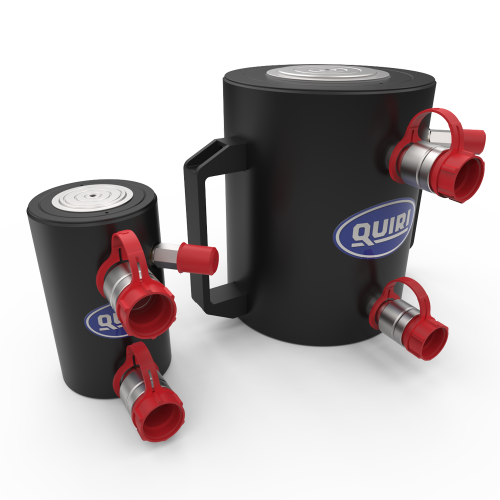 - QCD cylinders : hollow piston rod, single acting, hydraulic return