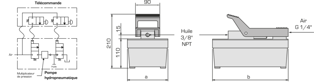 • Pression hydraulique proportionnelle à la pression d’air